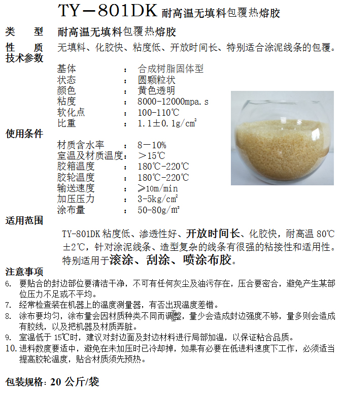 TY-801DG高温无填料包覆热熔胶