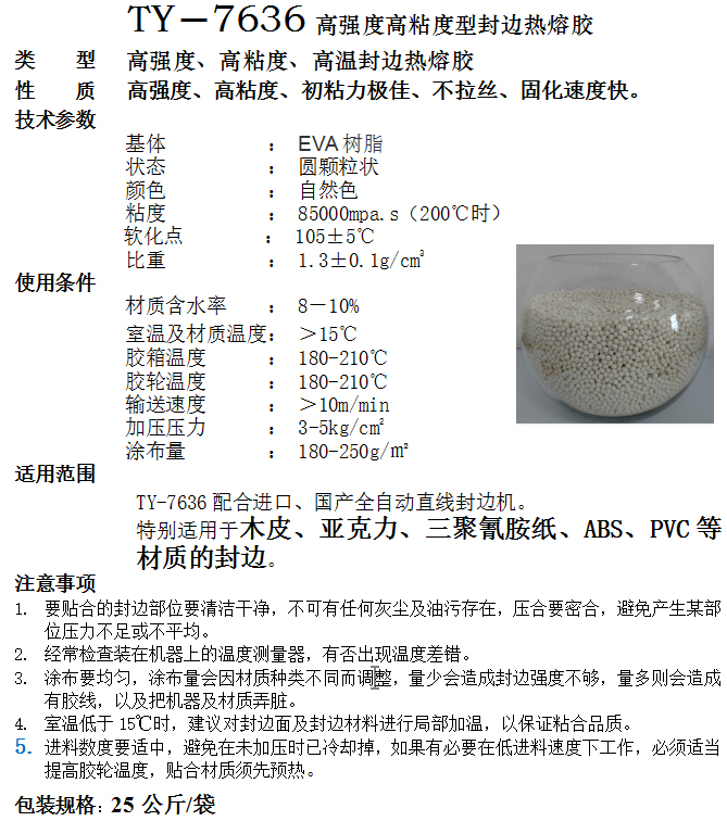 TY-7636M高固含量、高强度、耐高温型封边热熔胶